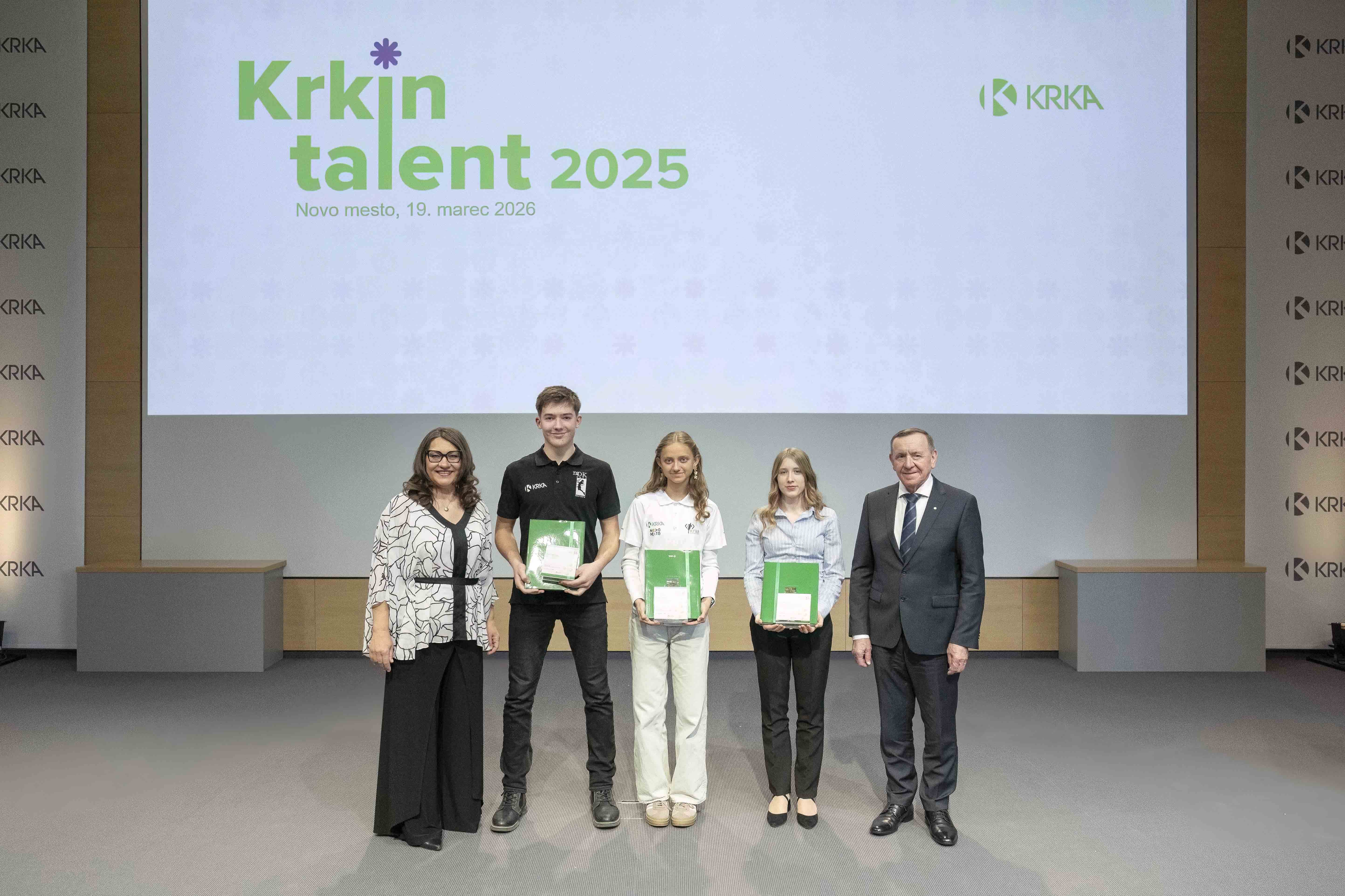 Naziv Krkin talent, ki ga mladim podeljuje od leta 2017, so letos prejeli Lara Balažic iz Atletskega kluba Krka Novo mesto, Leja Strgar iz Novomeškega simfoničnega orkestra in Pihalnega orkestra Krka, Peter Bregar iz Moškega odbojkarskega kluba Krka in Lenart Dejak iz Kolesarskega kluba Adria Mobil Novo mesto. Podeljenih je bilo še 10 zahval mentorjem in zaslužnim sodelavcem ustanov, priznanja za dosežke pa je prejelo 13 mladih, ki so kandidirali za naziv Krkin talent.